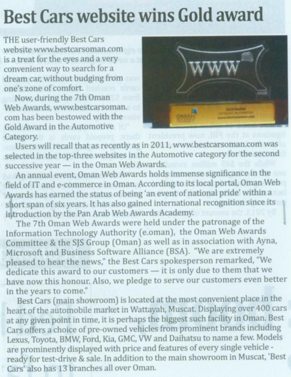 Best Cars website gold award